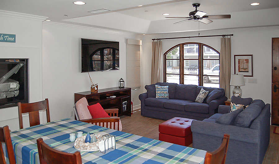 Built in 2014, this new beach house is ideally located in a very quiet neighborhood on the peninsula, only three houses from the bay and 3 blocks from the boardwalk. Take a stroll along the bay, and you’ll be at the ferry landing, where you will find restaurants and the fun zone for the kids. Take a walk on the boardwalk, and you can reach the Balboa pier to the east and the Newport pier to the west. Hop on the ferry to Balboa Island or rent a bike and ride to Marina Park, where there is a playground and restaurant.